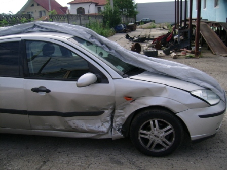 - usa dreapta fata bagata in bord de a plesnit torpedoul de abia am tras sa il deschid pentru acte, totodata stalpul este putin afectat si usa e impinsa sanatos in ceea din spate care la fel este indoitadar nu tare