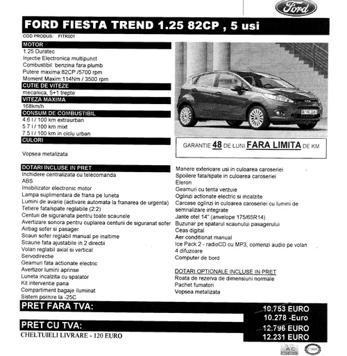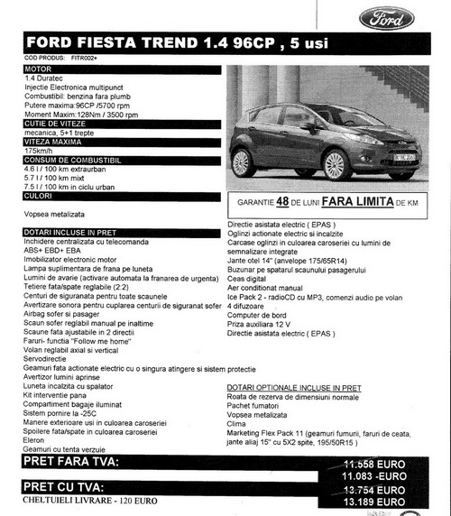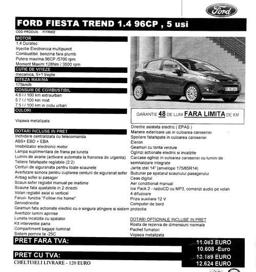 $1 scrie:$2u daca imi iau in vara noua fiesta cand a mea iese din garantie... imi voi lua varianta de echipare titanium motor 1.4/1.6 si optiunea bluetooth/voice control,6 boxe, display full matrix (nu pe 2 linii cum e standard) si port usb.