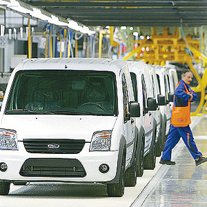 * First early production example of the Ford Transit Connect "Made in Romania" rolls off the assembly line