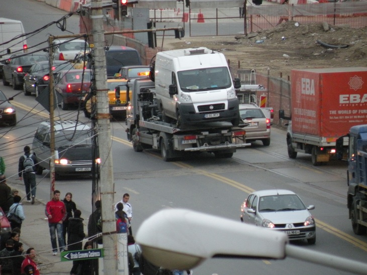 Azi pe la ora 13 am vazut platforma galbena incarcata cu o dubita dacia, care apartinea, cui credeti? romtelecomului ! Cred ca o saltase chiar din fata romtelecomului de la moghioros.Inainte cu cca 1 ora se luasera de 2 soferi care parcasera pe portiunea hasurata cu alb pe unde se poate intoarce masina de pe un sens pe celalalt. Norocul celor care parcasera ca erau pe aproape si au eliberat repede locul. Dupa ce politia comunitara si soferul camionului/platforma au luat o binemeritata pauza de tigara si au plecat,pe locul de unde intentionau sa ridice cele 2 autoturisme parcate neregulamentar mai devreme s-a oprit sa-si traga sufletul o camioneta care se plimba prin cartier cu antonel tanase cocotat pe panoul publicitar. Bineinteles ca nu a mai venit nimeni sa-l deranjeze pe sofer, doar si ieri probabil ca-si manca sandwichul tot acolo, pauza de masa e sfanta, nu?