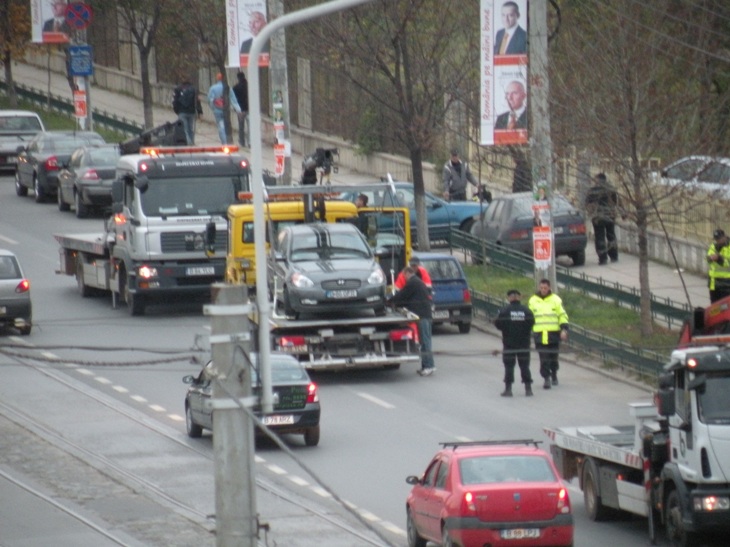 acum am venit de la Cora si au inceput sa ridice masinile din rondul de la lujerului spre plaza