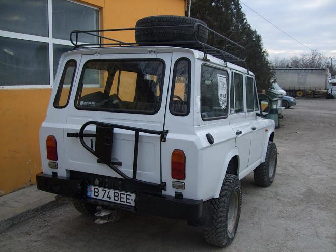 B-74-BEE, motorizare Brasov (diesel aspirat 3119 cmc), jante 15 intoarse cu anvelope BFG MT KN1, portbagaj custom pe toata suprafata plafonului si rezerva pe portbagaj.