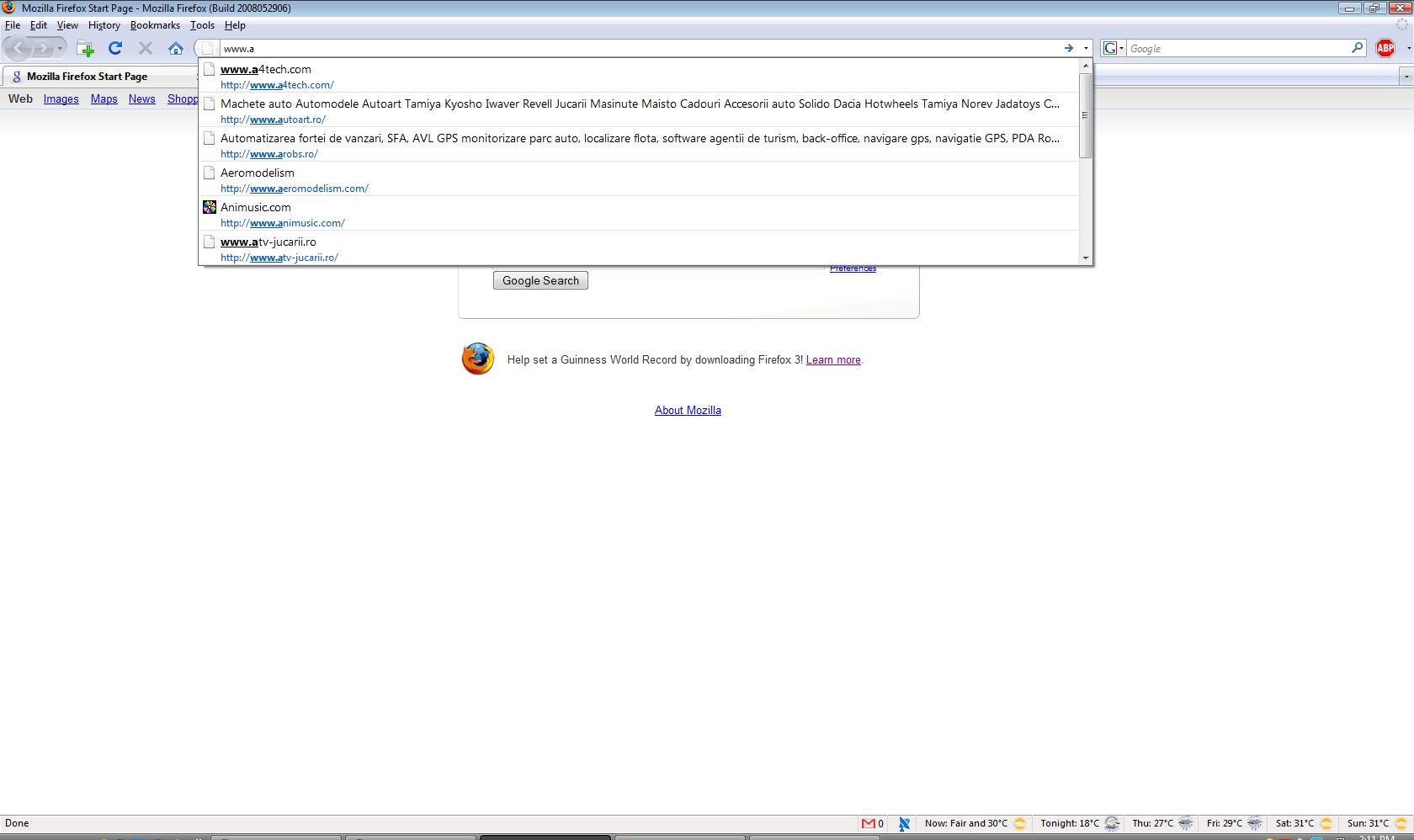 Cand scrii ceva in bara de adrese, orice browser iti baga auto complete (daca e setat) si iti da mai multe variante. Corect? Uite cum face Firefox 3: