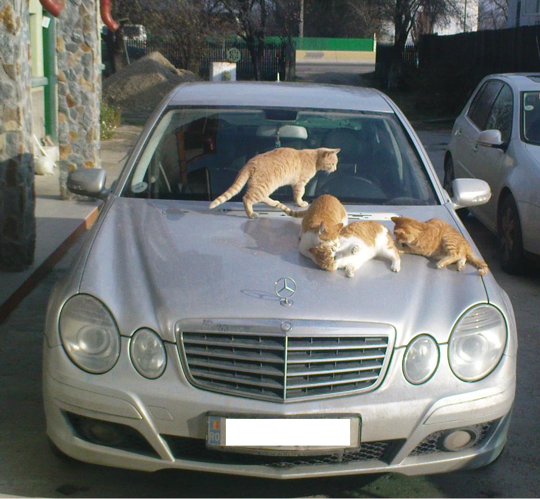 Pisici pe masina !! A le naibii pisici, am pus alarma de perimetru si degeaba. Nici nu baga in seama alrma. S e adapteaza repede la schimbari. Vin cu masina de la spalatorie si ele tzop pe capota. si nu le ajunge capota ci o iau din fatza pana in spate. Daca avetzi idei cum sa scap de ele postati aici.