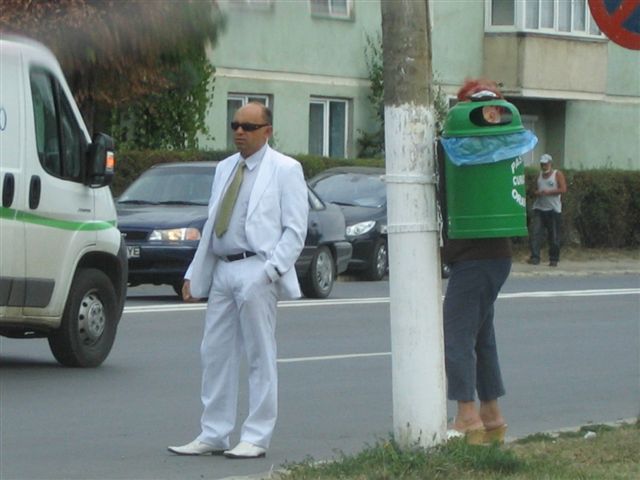 cand au vazut ca le fac poza, nevasta-sa s-a ascuns dupa cosul de gunoi