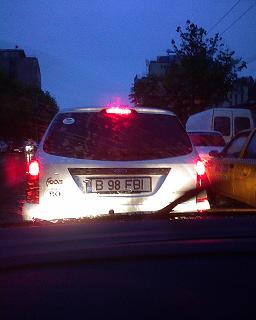 $1 scrie:$2iesta B-74-xxx, culoare inchisa (era cam intuneric), prin Balta Alba, pe stradutze. Eu parcasem deja si nu mai aveam flashuri...