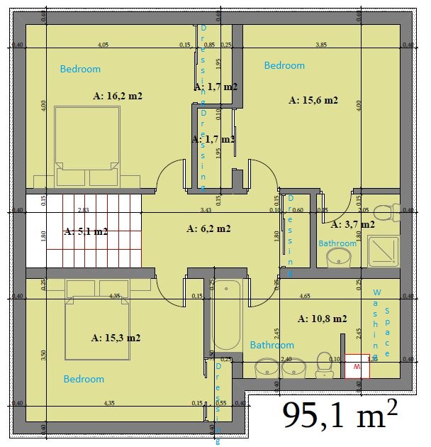 Impartirea camerelor arata bine. Instalatiile sanitare sunt optimizate prin asezarea grupata a bailor. Lipsesc niste spatii de depozitare mai generoase la dormitoare. Dulapurile alea vor fi insuficiente. Sper ca arhitectul s-a gandit si la asezarea camerelor si ferestrelor fata de punctele cardinale.