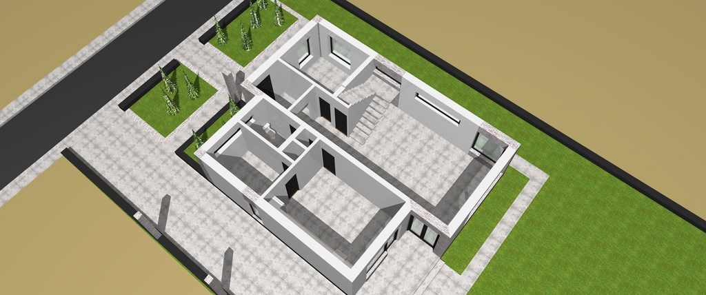 Casa ar trebui sa aiba in jur de 160 mp, in rest gradina, gazon si loc de joaca pentru copii (sper sa vina in viitorul apropiat)!