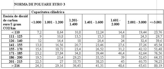 $1 scrie:$2hem, revin cu o rectificare, am refacut calculele pentru masina mea (Euro 3, din 2004, emisii 182 g / Km, 1798 cmc):