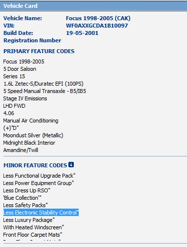 Se poate afla daca un focus are sau nu ESP cu ajutorul VIN-ului? Aplicatia de pe net ofera doar cateva date esentiale. Poate cei care au aplicatia instalata pe PC pot afla mai multe. VIN-ul este WF0AXXGCDA1B10097.