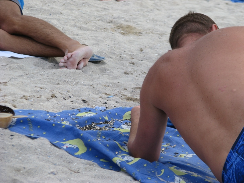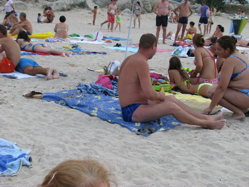 Nu-i chiar de ras (ba chiar din contra!)... Am intalnit specia "Taranul de plaja". Sa mor de nu aveau cam juma' de kil de seminte (coji) pe cearceafurile pe care stateau!!! Erau doi frati dupa fata (una de dobitoc, ati ghicit) cu neveste si copii. Catre final, au intors cearceafurile ca sa scape de coji (asta la putina vreme dupa ce am ajuns pe plaja, asa ca nu stiu cate cearceafuri au intors pana atunci).