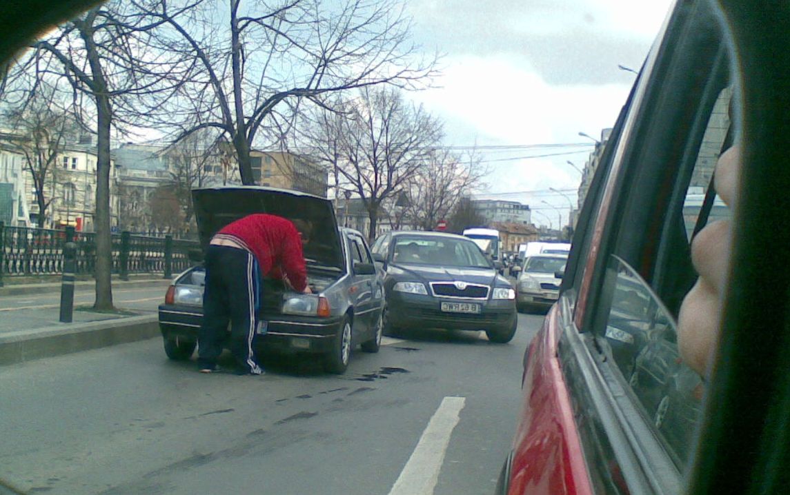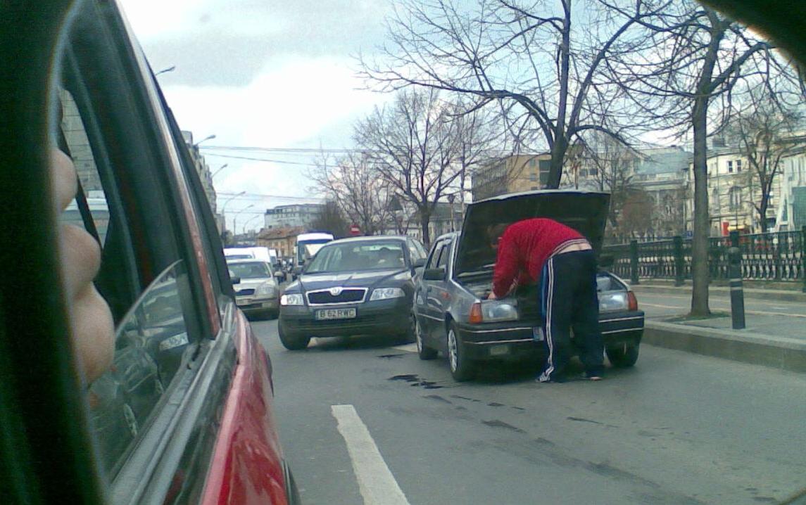 Vineri, pe la ora 15...la intersectia cheiului Dambovitei cu Victoriei...un nenishor care avea ceva probleme cu racirea la o Dacia Nova (nu m-am putut abtine....era prea tare faza....in mijlocul Bucurestiului....il lasa masina ...si de nervi isi arata "obrajiorii" celorlalti participanti la trafic)....))) Ce poate fi mai frumos decat asta.....