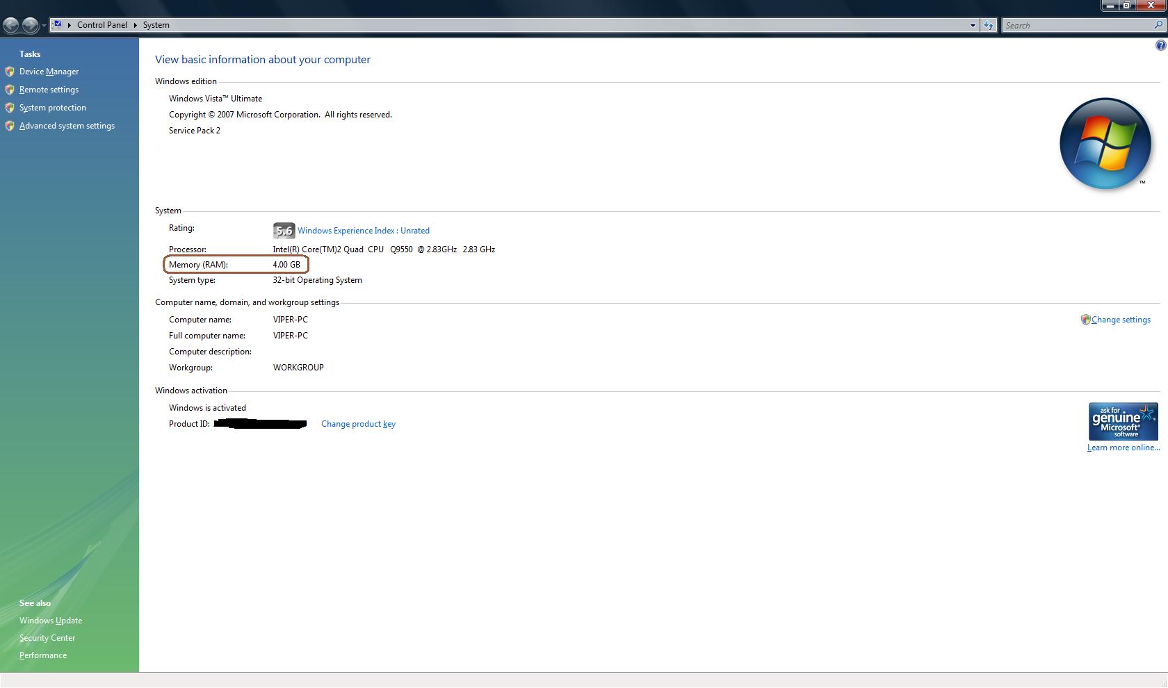 Procesorul nu are "rami" (acest cuvant nici nu exista, s-a incetatenit total gresit...). Procesorul are frecventa care mai nou se masoara in GHz (giga hertzi). Iar procesorul AMD Athlon II X2 240 are fix 2.8GHz deci este corect ce afiseaza. Chestia cu "vazutul" memoriei (RAM = memorie - Random Access Memory) de 4GB corect in sistemele de operare pe 32 de biti este relativa, sistemul foloseste toata memoria doar ca pe unele configuratii nu o afiseaza. Pe alte configuratii o afiseaza corect, in functie si de versiunea de BIOS folosita la placa de baza (vezi poza atasata, am Vista 32bit si "in mod normal" nu ar trebui sa imi afiseze decat 3.2GB RAM).