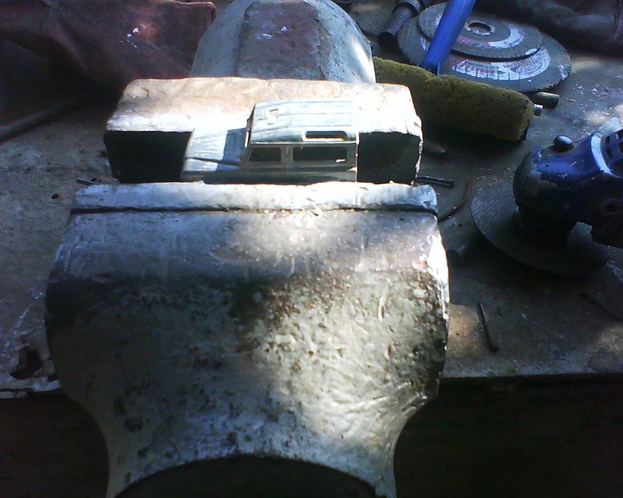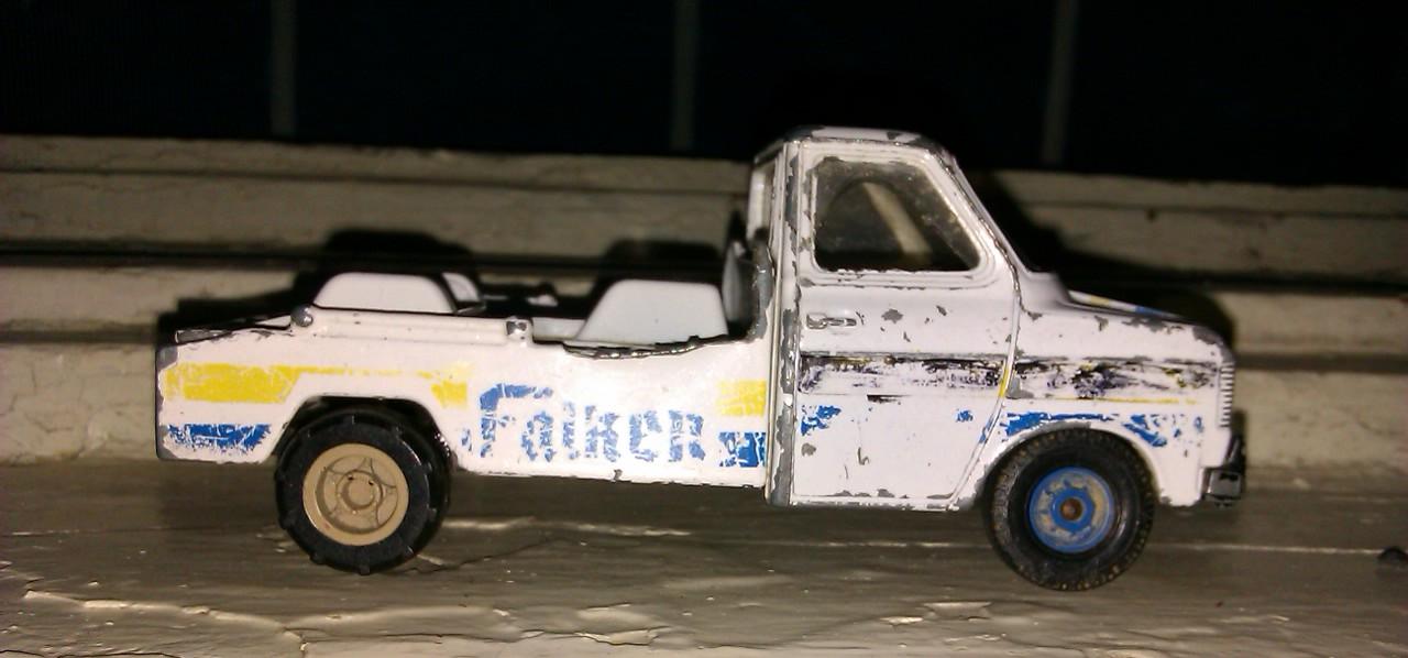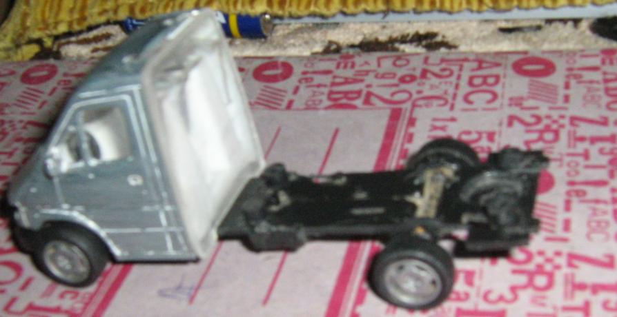 Am sa arat decat 2 chestii: una ar fi unul din Land Rover-ele Defender de la Majorette, caruia am decis sa-i tai din acoperish. De ce? Pai... in principal pentru ca pot. Am gasit prin cutia care imi adaposteshte junkyard-u' (nu stiu ce cauta acolo ) un disc de taiat ffff subtzire pe care l-am mai folosit mai demult sa decupez acoperishu' unei ambulantze(Volkswagen LT35 1:43, am taiat din plafon ca sa-i fac o suprainaltzare, dar n-am terminat-o nici pana azi, inca sper ca o s-o termin, desi nu cred ca o sa o mai tzin ambulantza, o las duba suprainaltzata ) si mi-a venit ideea stralucita sa ii tai partea din spate la acoperish sa il fac pick-up. Interioru' e de plastic, dintr-o bucata si are 2 banci longitudinale pe laterale, asa ca arata chiar marfa(ceva gen qm sunt masinile de poltzie prin Africa(aia au Land Rover-e de politzie cam asa configurate ).