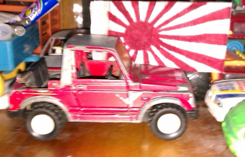 La Suzuki voi reface decat vopseaua, o sa-i caut o roata de rezerva si o sa-i fac un mic roll bar. Atat, nu ma bag sa il modific pentru ca mai am unu' mic pe care l-am inceput si nu l-am terminat :) .