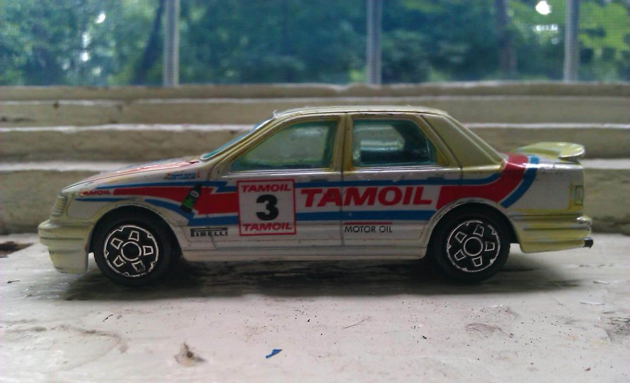 In afara de Escort-uri mai sunt Sierrele si XR4Ti-ul(da, am si una care e XR4Ti, nu Sierra XR4i, e de la Maisto si culmea, e roshie ca Fritz ), mandria colectziei mele. Cateva sunt gata, vreo 2 XR4i-uri in stare perfecta cu grafica de curse TEXACO, una simpla argintie, una albastra si una gri de grund cu eleroane negre, una in 5 ushi Majorette, o chinezarie mica(defapt sunt 2, dar una este in junk yard ) si vreo 4 Sapphire Cosworth-uri 1:43(una este revopsita prost de fostul proprietar cu negru si e un pic cojita, am retushat-o, dar cred ca o sa trebuiasca revopsita ).