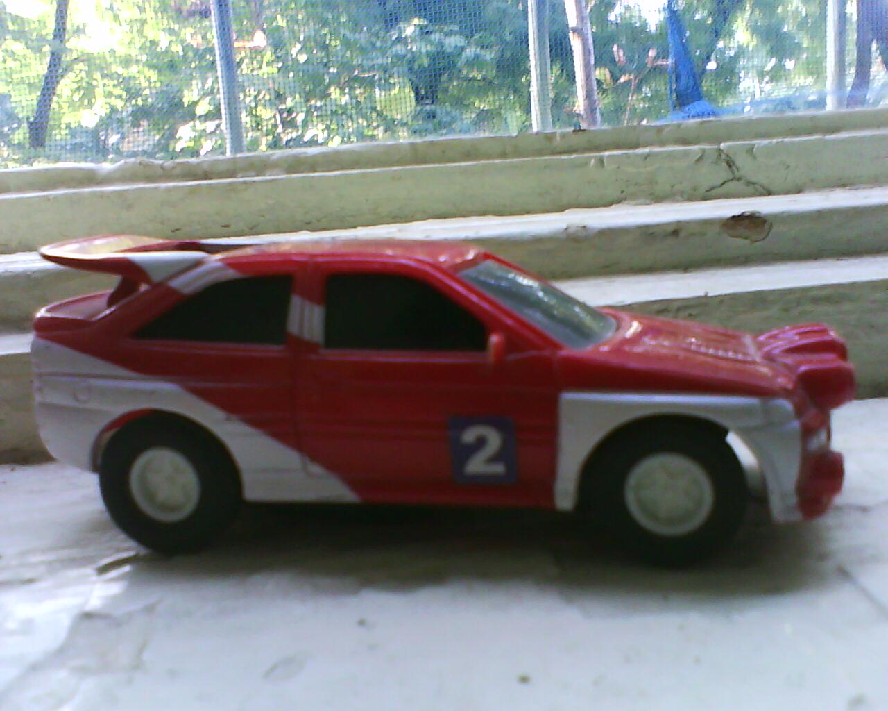Probabil o sa radeti, dar si aia e o chestiuta stilizata(termen de PR pentru chinezarie) de plastic. E o serie de masini electrice care merg pe circuit(nu am si circuitul), serie din care mai am un Escort RS Cosworth( Imagine ), inca o Calibra la fel dar care era naspa raaaau(fara roti, fara abtipilduri si crapata) si prin urmare am trimis-o in junkyard si un BMW pe care l-am tot asa, l-am trimis in junkyard(a facut mare accident si acum e turtit tot).