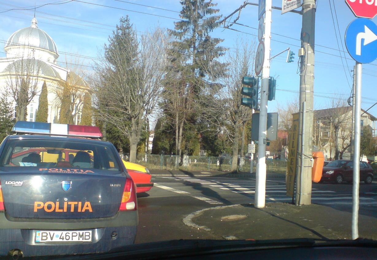La o analiza mai atenta a imaginii se vede ca masina militiei este situata imediat dupa iesirea strazii din dreapta ( din pacate nu am apucat sa fac si o poza in care semnaliza intentia de a intoarce ) Ca sa vedem cine respecta regulile in tara asta