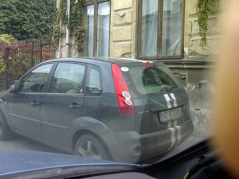 $1 scrie:$2 Fiesta neagra cu dungi albe, nr NT-87-GNU.