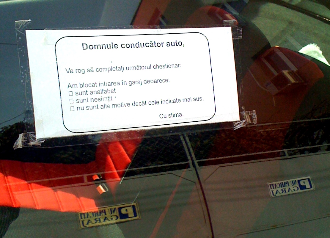 $1 scrie:$2ai si de ce-i interzisa parcarea acolo ?