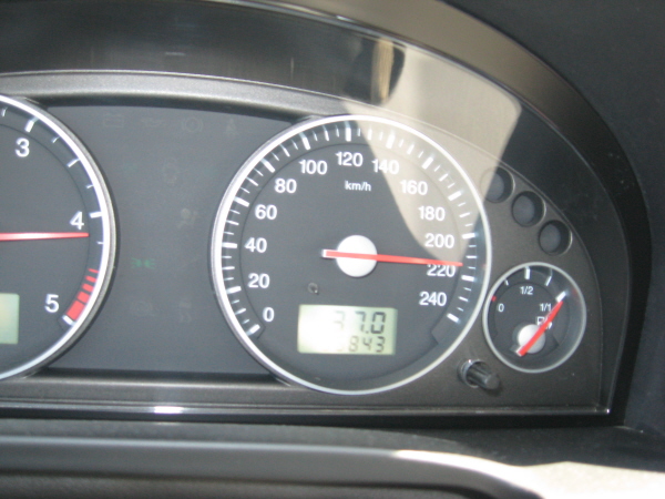 cred ( acul atingea liniuta de la 220 fara sa reusesc sa-l suprapun ). Am facut aproape tot drumul de la Bucuresti pana la iesirea spre Slobozia cu viteza asta . Aproximativ 90 km in 25 minute . Masina a mers OK. Am fost curios sa vad la cat ajunge. Cand mai reduceam la 190 parca stateam pe loc