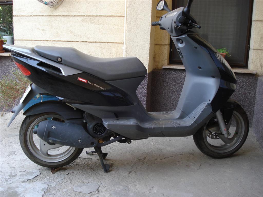 Pe final de sezon, dupa ce am mers si cu mobra si cu scuter in Bucuresti, din ratiuni pur practice (aceleasi avute in vedere cand am obtinut permisul categoria A) m-am dotat cu un scuter de 125 cmc. Intamplarea a facut ca un prieten sa cumpere scuterul in iunie anul acesta , ulterior a obtinut si A-ul si si-a luat si mobra si mi-a dat scuterul la un pret bomba cu 150 km la bord. E un Derbi Boulevard facut de Piaggio. E de fapt un Piaggio Fly sub un alt brand.