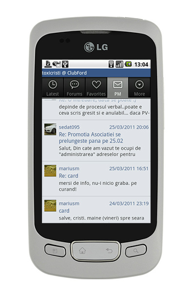 De acum, poti accesa forumul ClubFord mult mai usor de pe telefonul tau prin Tapatalk. Se pastreaza cele mai importante functionalitati : citirea forumului, raspunderea la mesaje si mesaje private (cu/fara citat sau poza atasata), vizualizarea mesajelor noi/recente, editarea profilului, vizualizarea membrilor online, cautare si altele.Ce este Tapatalk?Tapatalk este o aplicatie pentru iPhone,