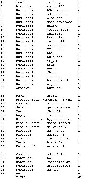 . Il trimit imediat, doar l-am atemtionat pe adris ca nu pot sa il trec in lista fara sa stiu localitatea.