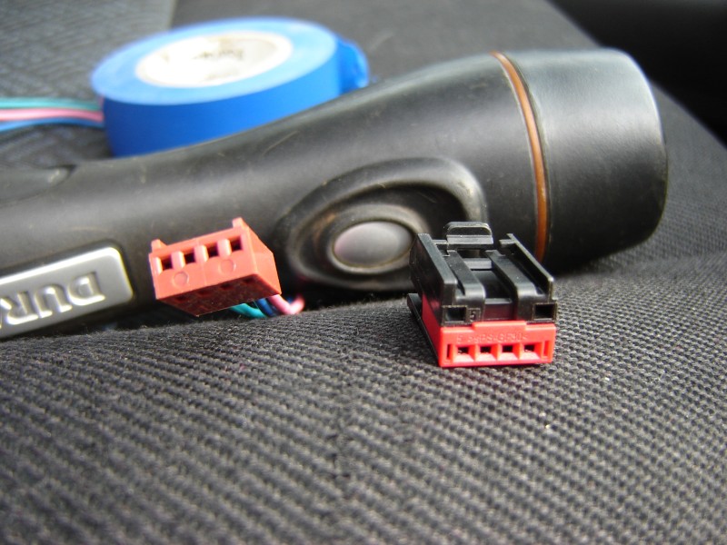 In consecinta , cum nu puteam sa recuperez mufa originala , am folosit alta ( in poza in stinga ), mufa care avea si cablu , am legat pe firele masinii , si acum am mufa auxiliara .
