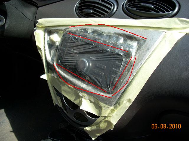 Imi pare rau ca nu am facut poze in timp ce am lucrat, dar va asigur ca mi-am taiat si pilit mult degetele pana am ajuns la forma finala. Pentru cei interesati, se taie foarte mult din bord, din fata CD-ului, si evident din masca de la AC.