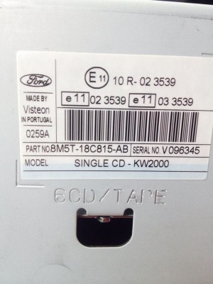 Am si eu nevoie de un cod pentru un Ford audio systems part no 8m5t-18c815-ab SR V096345 . Multumesc anticipat .