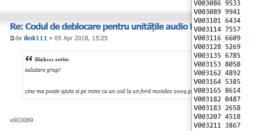 Re: Codul de deblocare pentru unităţile audio Ford