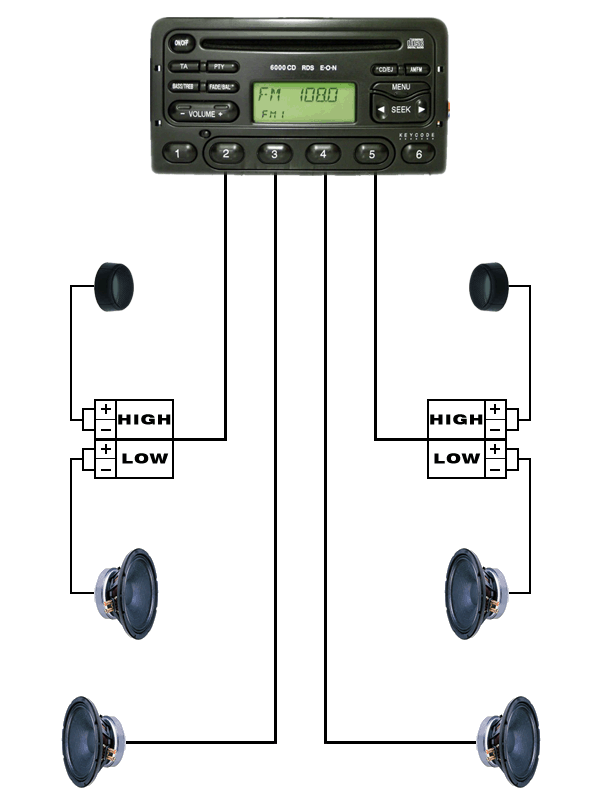 Ce cred eu : Are iesiri tot pentru 4 difuri, dar exista 2 crossover-e (unul in stanga si unul in dreapta) care primesc semnalul ca 2 boxe normale, dar impart semnalul la tweeter si woofer (adica celor 2 difuri din fiecare usa din fata). Cam asa lucreaza orice sistem de difuri aftermarket si nu vad de ce in cazul de fata ar fi altfel.