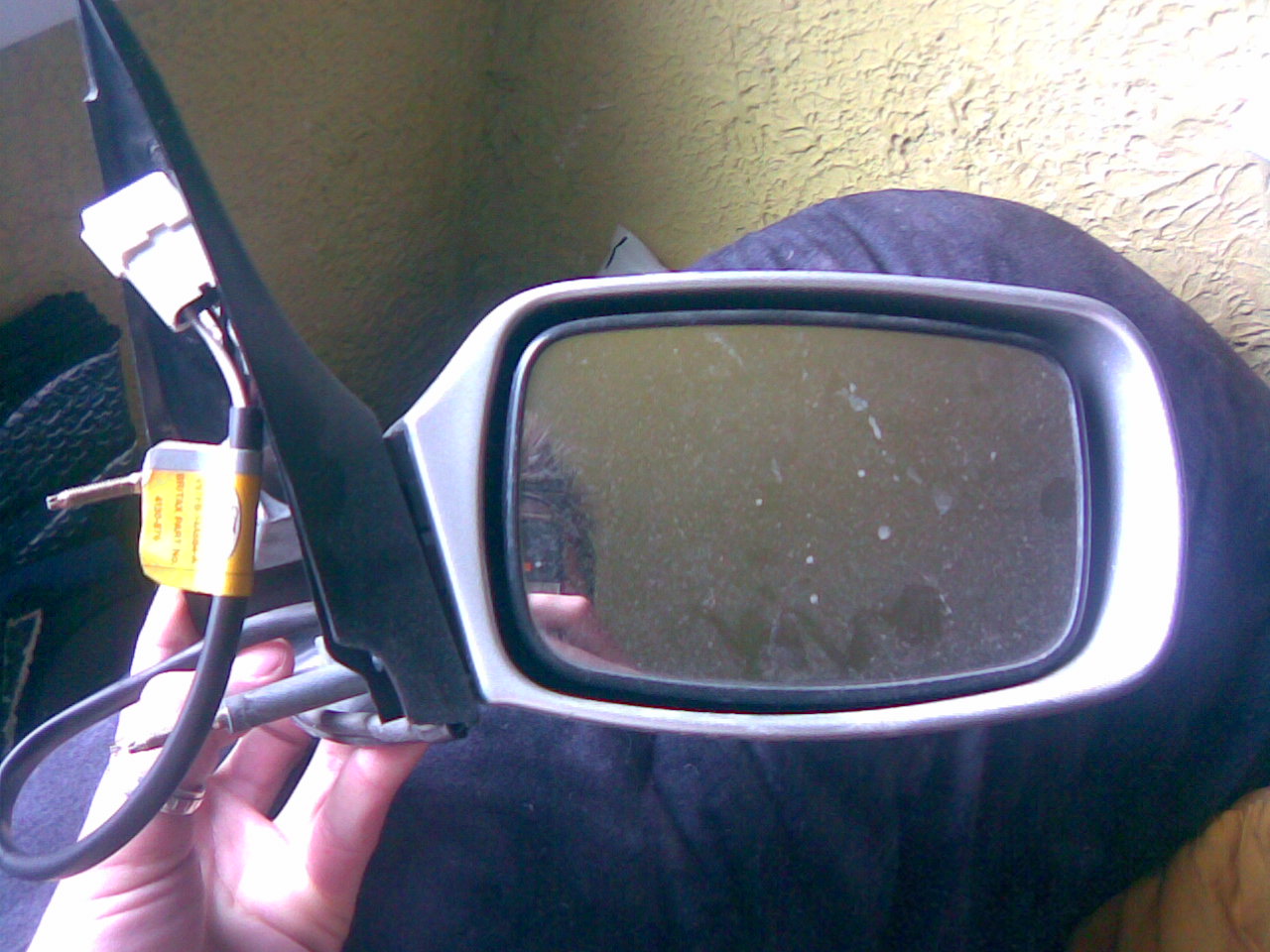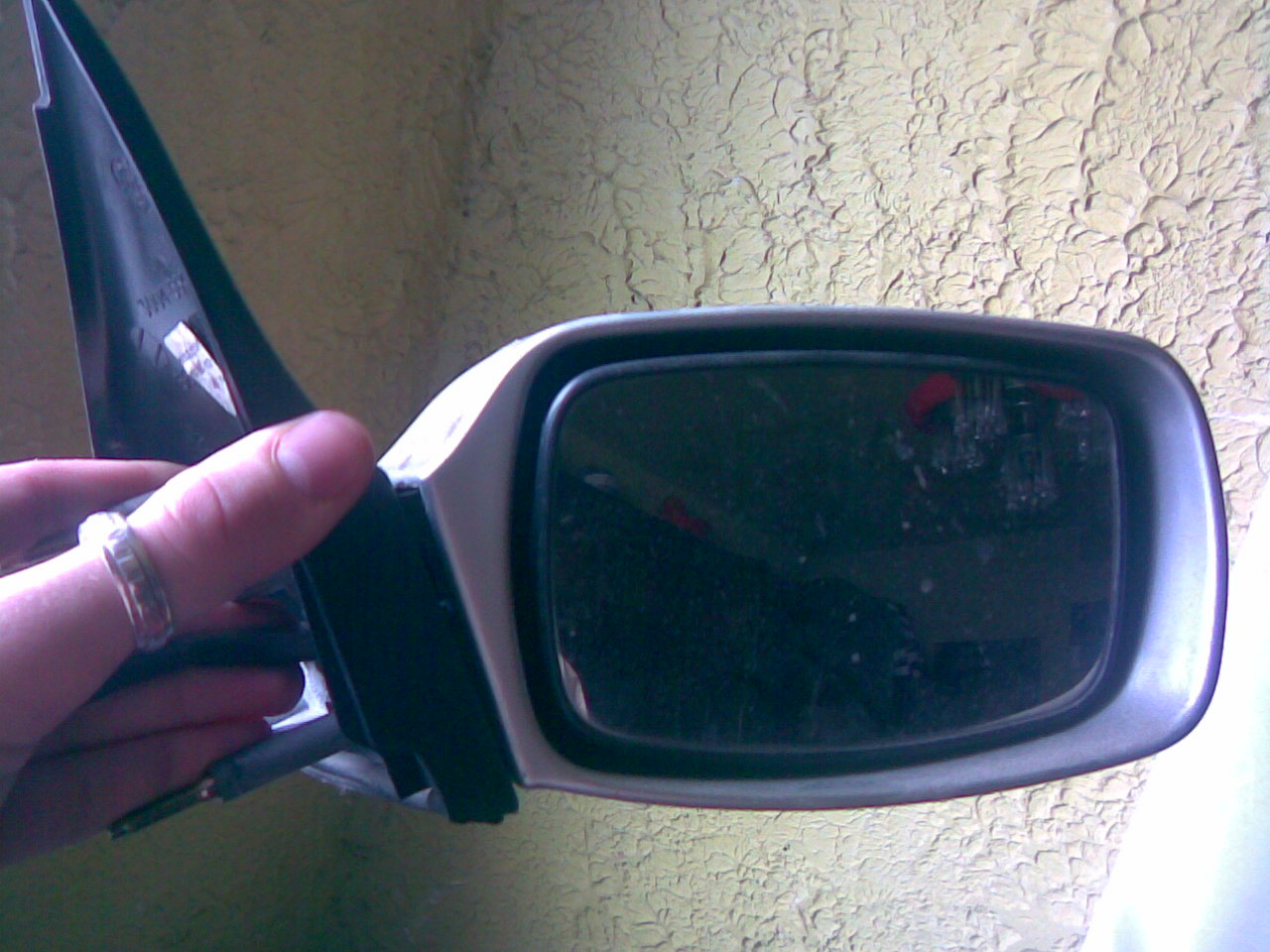 are ceva rupt inauntru un plastic eu am mers asa cu ea vreo 6 luni la exterior nu se observa nimic.partea electrica nu are nici o problema,oglinda e cu totul cu suport cu toate firele...