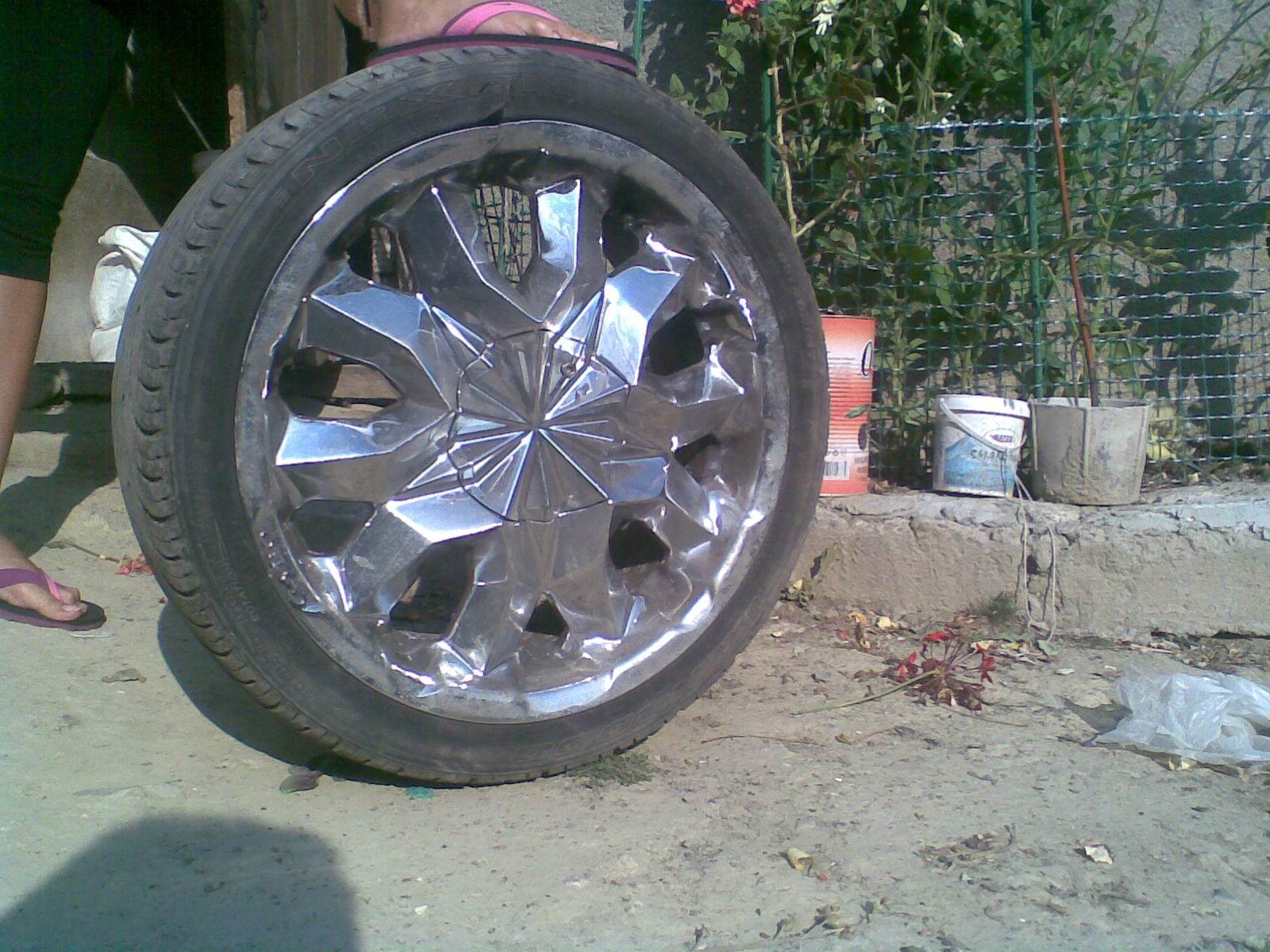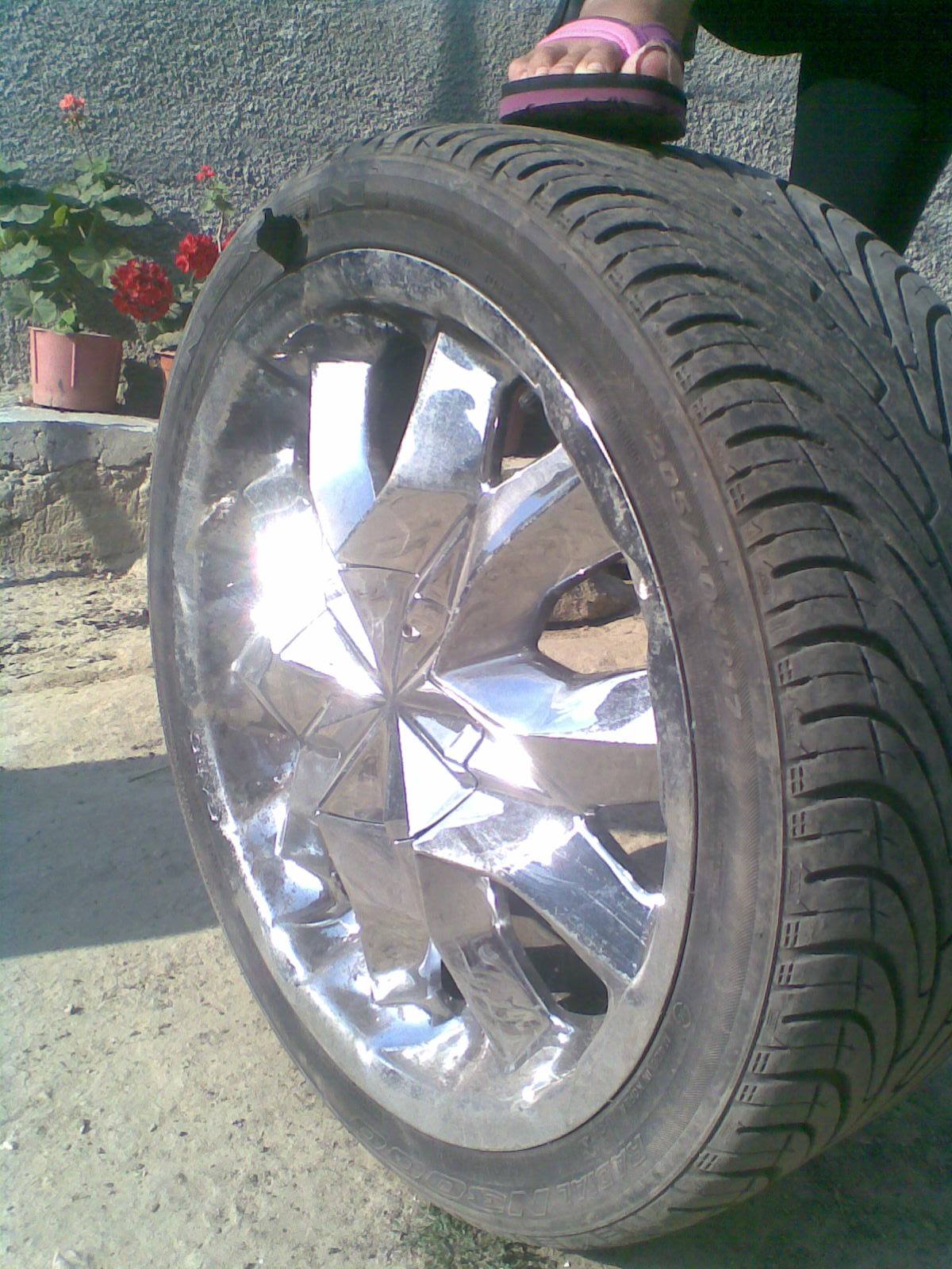 unii cred ca daca au jante cromate au aur alb... se vede clar ca janta e indoita sus, linia jantei in forma de O nu mai este asa, e un pic deformata. daca e cum zici tu pune o poza clara cu toate 4