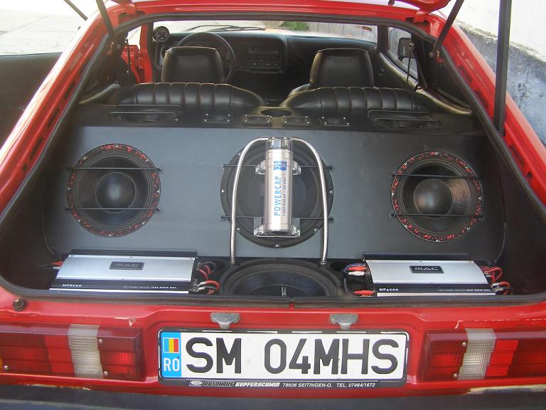 Sistem audio format din: 2 amplificatoare, 1 condensator 1 farad, 2 difuzoare bas Rockford Fosgate 400W Rms, 4 difuzoare medii, 4 difuzoare inalte. Numai sistemul audio a costat in jur de 1000 euro.