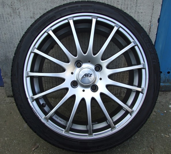 Vand 4 jante AEZ Xylo 17'' cu anvelope Cooper Zeon XS2 205/40/17. Una din jante este zgariata pe o suprafata de aprox 2 cm patrati, restul sunt neatinse. Au 500 de Km atat jantele cat si gumele. 700 Euro discutabil. 0722545611. Eu le-am avut pe un Ford Focus fabricat in 2002.