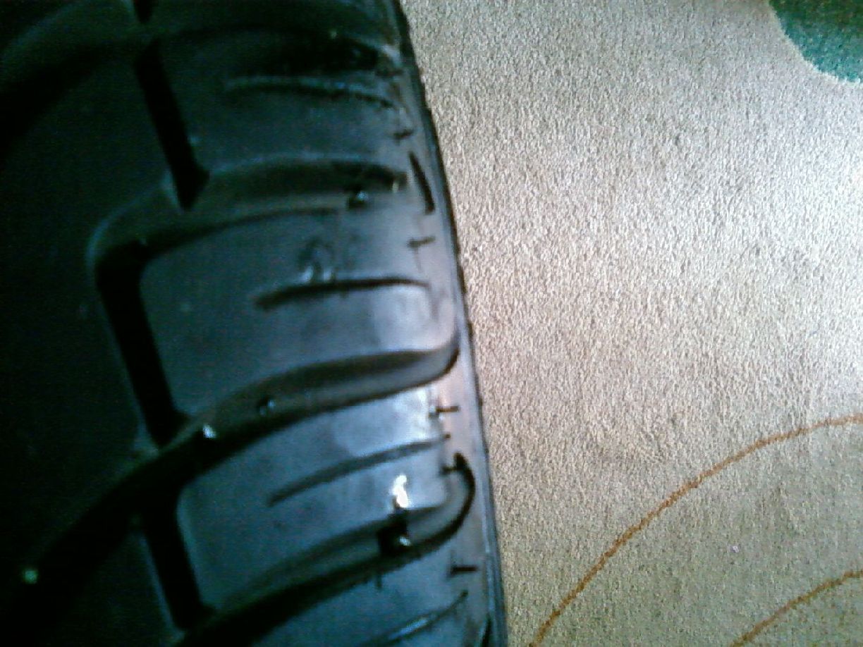pozele cu 2.x sunt la cel cu "por`ul" ... are si o zgarietura pe exterior ... pe interior am localizat "por`ul" (e punctul alb din poza 2.3) ... are aprox 700-800 km , a stat pe fata ... se vad tepii de pe exterior si cei de pe marginea suprafetei de rulare