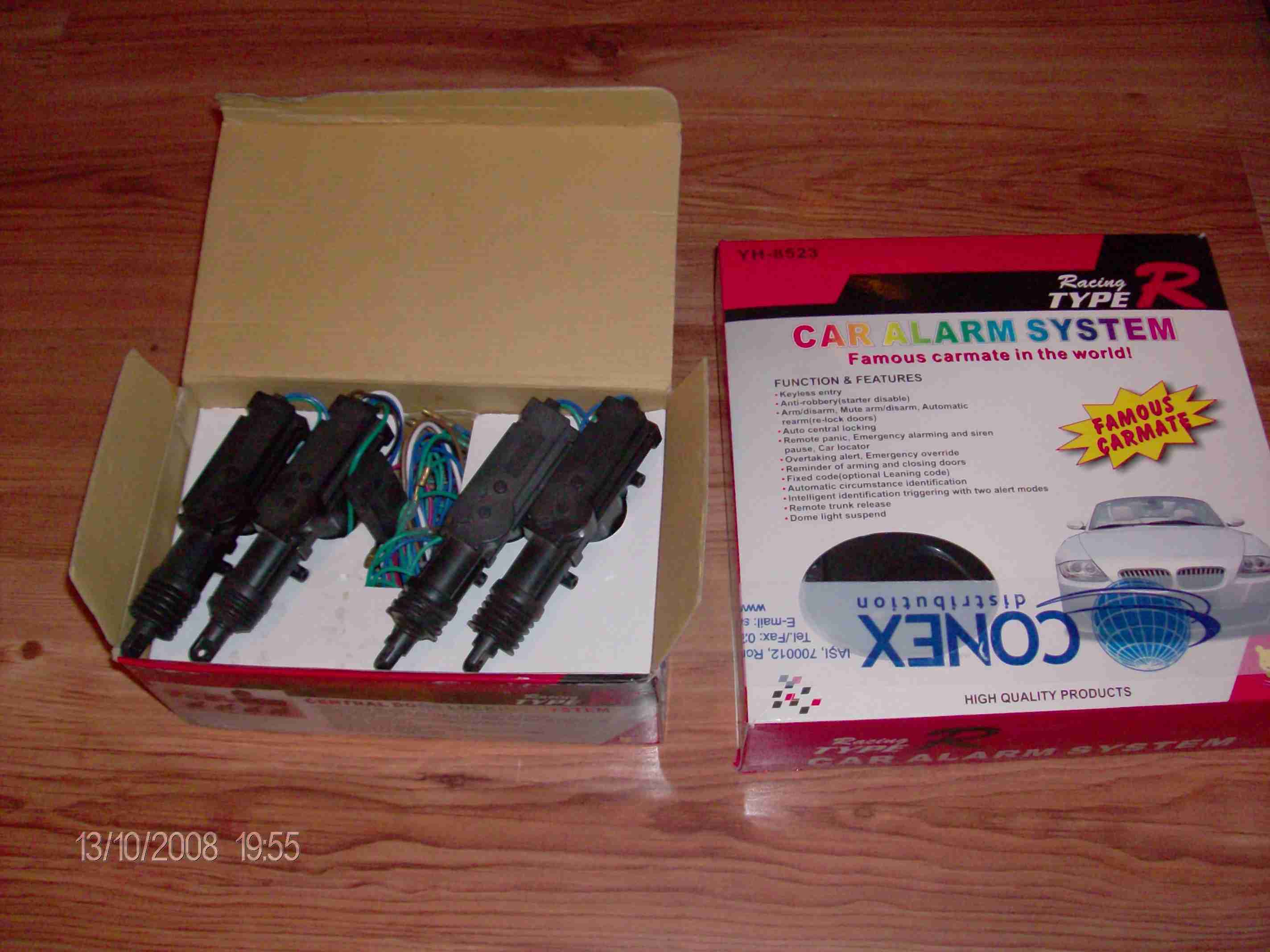 Vand alarma Typr R+inchidere,toate sunt noi ,nu au fost montate niciodata pe masina ,doar ce am desfacut eu cutiile sa vad cum arata.le-am cumparat in data de 03.06.2007 cu pretul de 129.99 ron ,am si bon fiscal pe ea ,nu am dece sa mint.