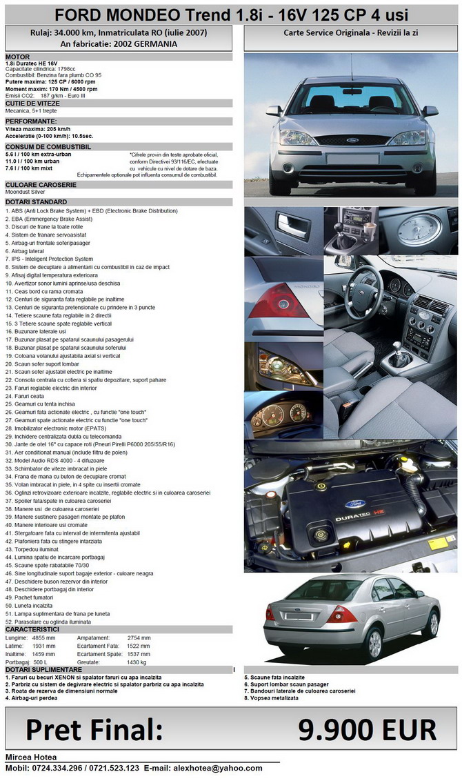 $1 scrie:$2color=#FF0000]FORD MONDEO Trend 1.8i - 16V 125 CP 4 usi[/color]