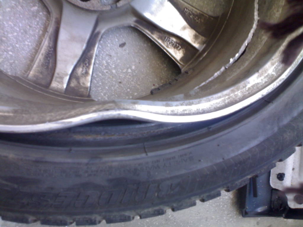 N-am mai vazut asa ceva.Am luat si eu o groapa pe la 80-90,s-a indoit buza pana s-a lipit aproape de interior.Noroc ca am luat-o cu interiorul si nu s-au deformat spitele,s-a reparat.Anvelopa n-a avut nici macar o galma,traiasca avelopele cu indice ZR
