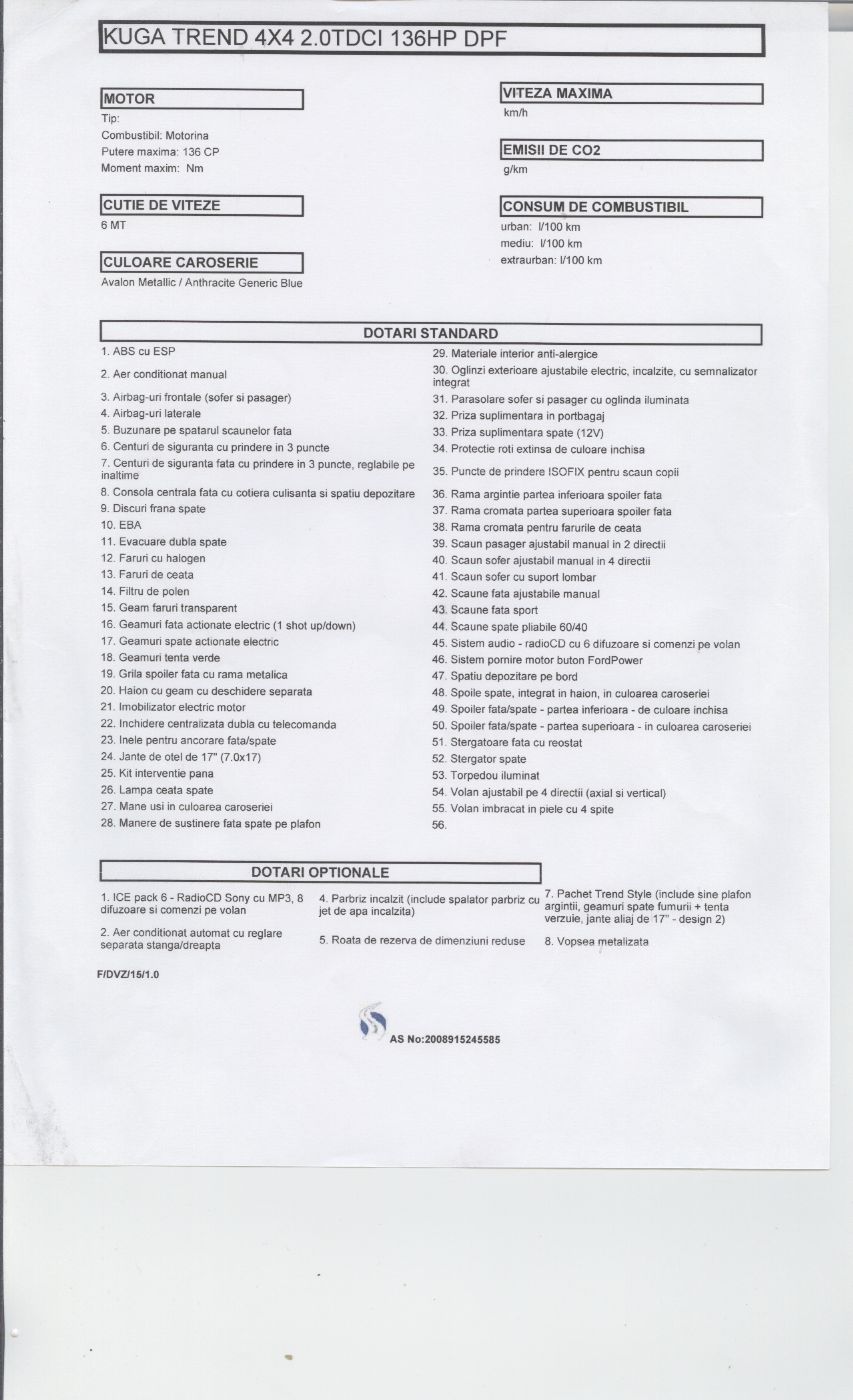 Cedez contract leasing pt Ford Kuga an fab.2008 rate platite la zi.
