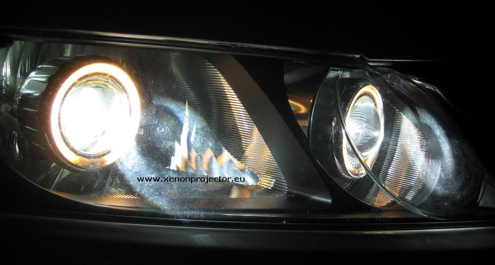 Proiectoarele bi-xenon folosec un singur bec de 35 wati cu xenon, care asigura o lumina de calitate, puternica si foarte bine focalizata cu ajutorul unei lentile convexe. In completare, pentru ca efectul vizual sa fie total, fiecare proiector este prevazut cu Angel - Eye, avand un design exceptional si de calitate. Inelul cu neon - angel-eye- poate fi comandat in diverse nuante: alb, albastru, verde, rosu. Becurile cu xenon pot fi comandate cu temperatura de culoare intre 4300 K - 10000 K. Noi recomandam pentru vizibilitate maxima lumina alba, solara de 6000 K.