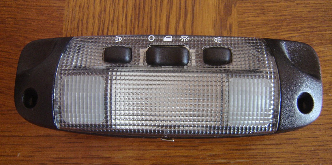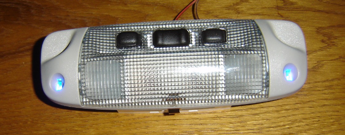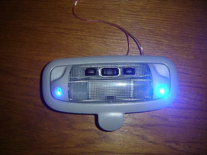Plafoniera cu leduri albastre plug & play - un buton aprinde ledurile albastre, celalalt aprinde ambele lumini tip map lights.