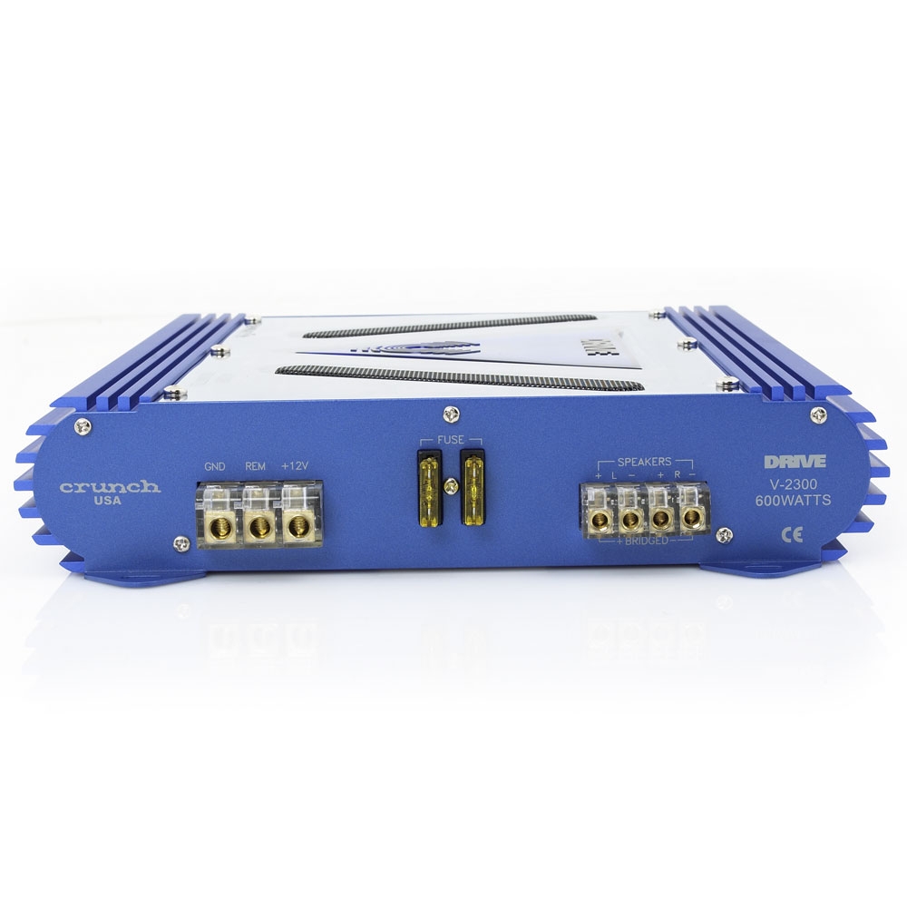 Designed to deliver big power on demand, V-Drive offers incredible performance in a sweet visual design including illuminated VU's monitoring power output, a mesh grille ventilation system to keep your system running cool, and killer chrome finishing to top it off. Performance is earth shaking. These fully bridgeable class A/B amplifiers come in a variety of power configurations including two, four, and even mono channel designs.