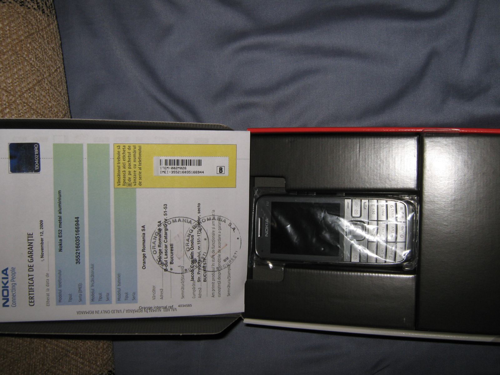 Telefonul a fost cumparat acum cateva zile de la Orange. Este SIGILAT (adica nefolosit, 0 minute etc.) , necodat, nebranduit si cu garantie 2 ani (certificat + aviz de insotire al marfii).