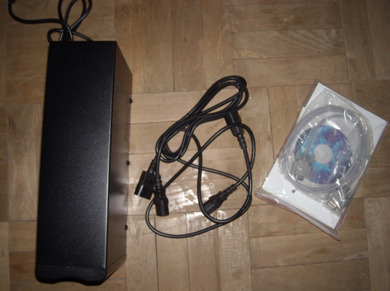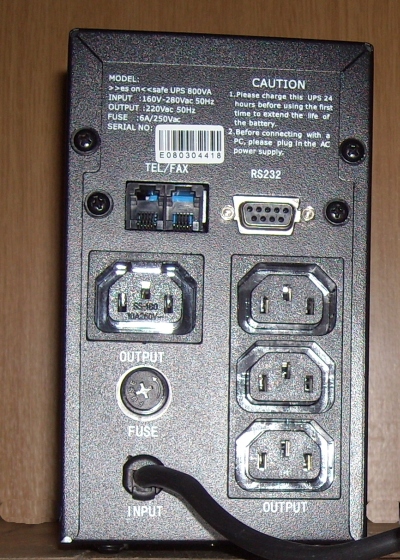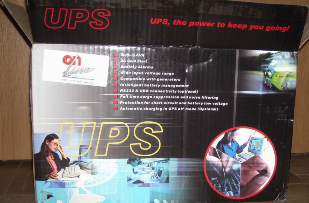 UPS 800VA cu 4 iesiri, firma este una nemteasca - On-line. Nu stiu foarte multe detalii, pot citi de pe cutie. UPS-urile nu sunt folosite, unul singur a fost desfacut (cel din poza), dar se poate verifica faptul ca nu a fost folosit nici un minut.