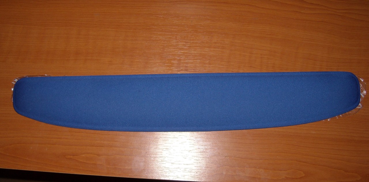 Am mai multe bucati de Pad-uri cu Gel pt tastatura, toate au culoarea albastra. Suprafata e material textil, inauntru au gel care se deformeaza, dar revine intotdeauna la forma initiala (cea din poze). Este bun pentru incheieturi.