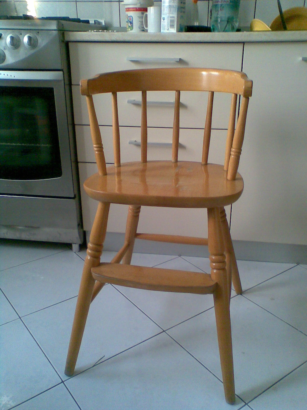 Vand scaun copil mic, lemn masiv, foarte solid, eu l-am mai folosit pe post de scara cand aveam nevoie sa iau cate ceva de rafturile superioare ale debaralei.Scaunul este folosit , lacul nu mai arata ca la inceput, totusi consider ca este cel putin in stare buna, ca aspect; imbinarile sunt ca noi.