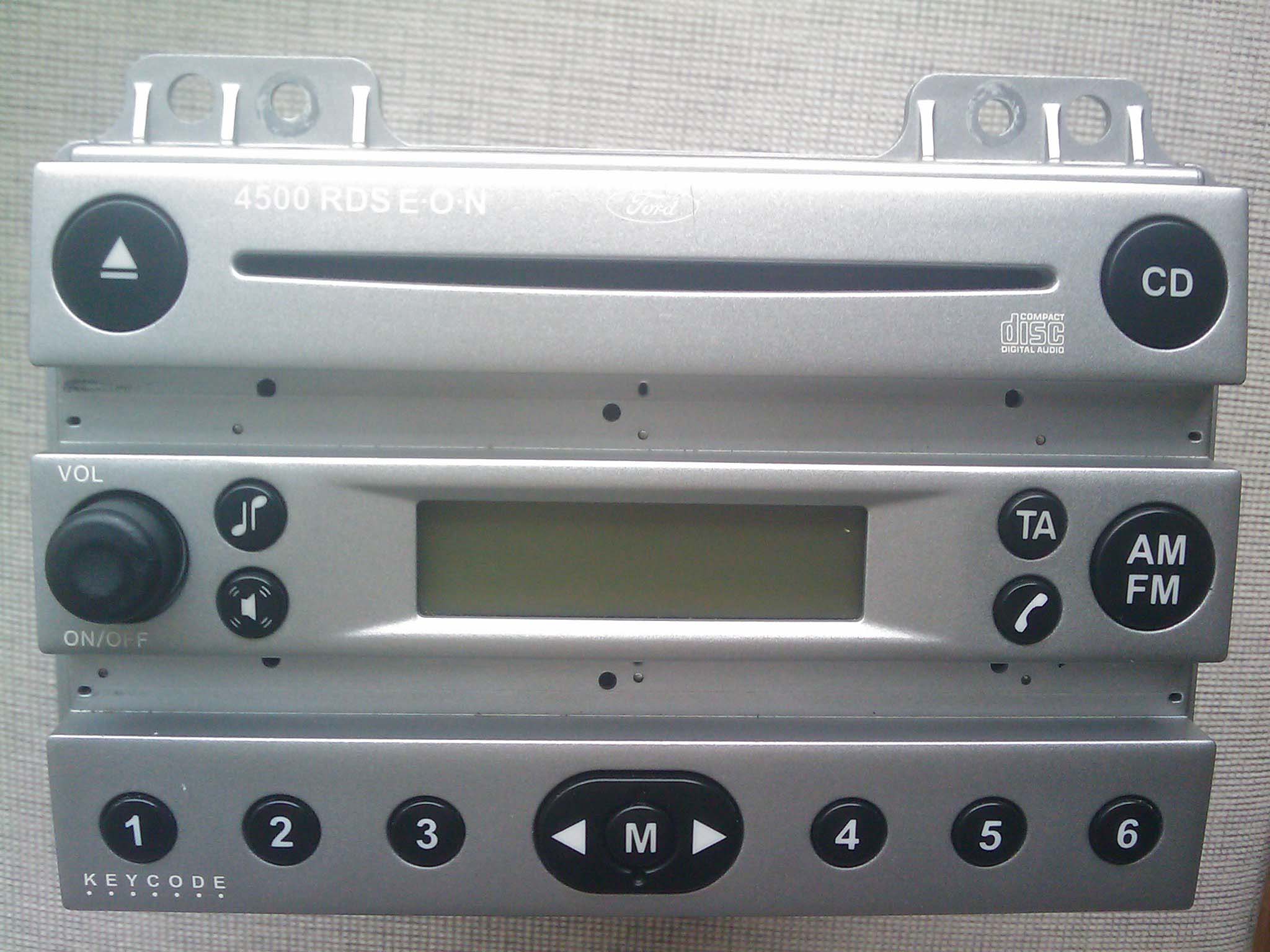 Vand CD player Ford 4500 RDS EON, culoare argintie, stare foarte buna (are mici zgarieturi superficiale in dreptul siglei si pe butonul de volum).